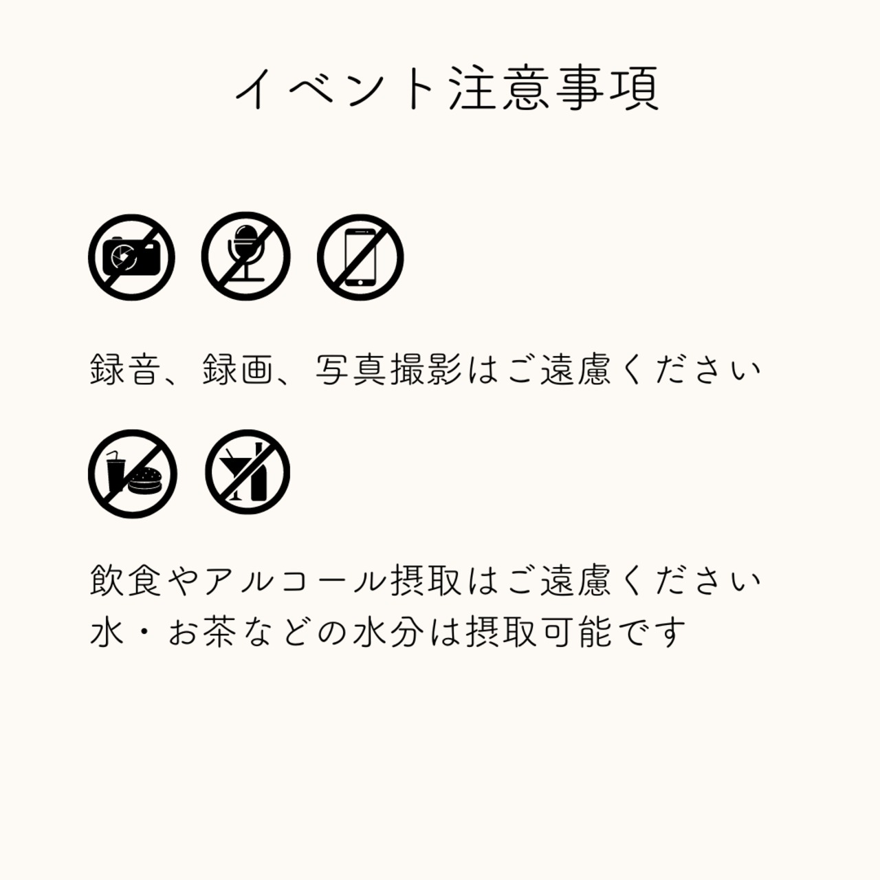 ・飲食・アルコール摂取はご遠慮ください。