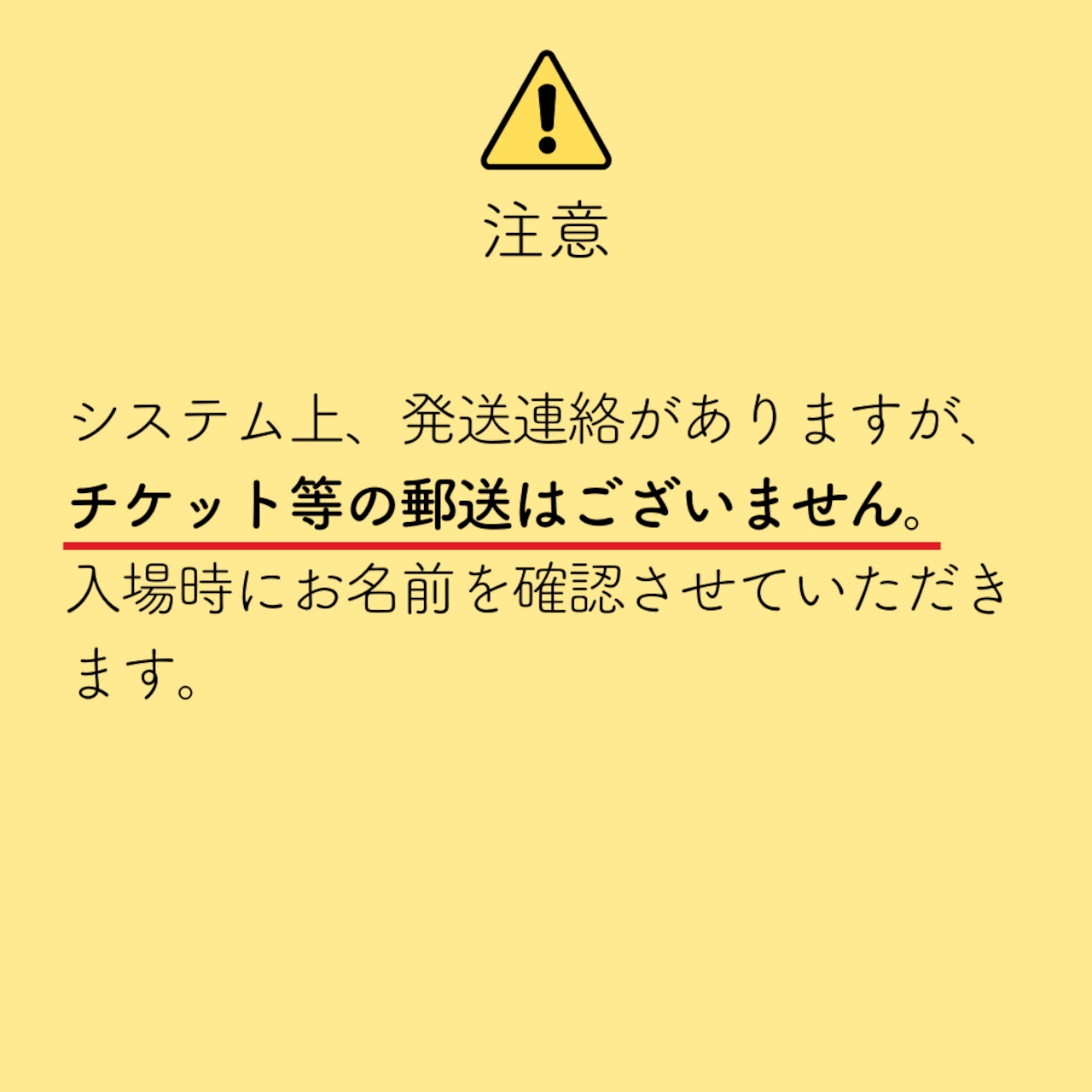 システム上、チケット発送というメールが送付されますが、チケット現物の発送はありません。