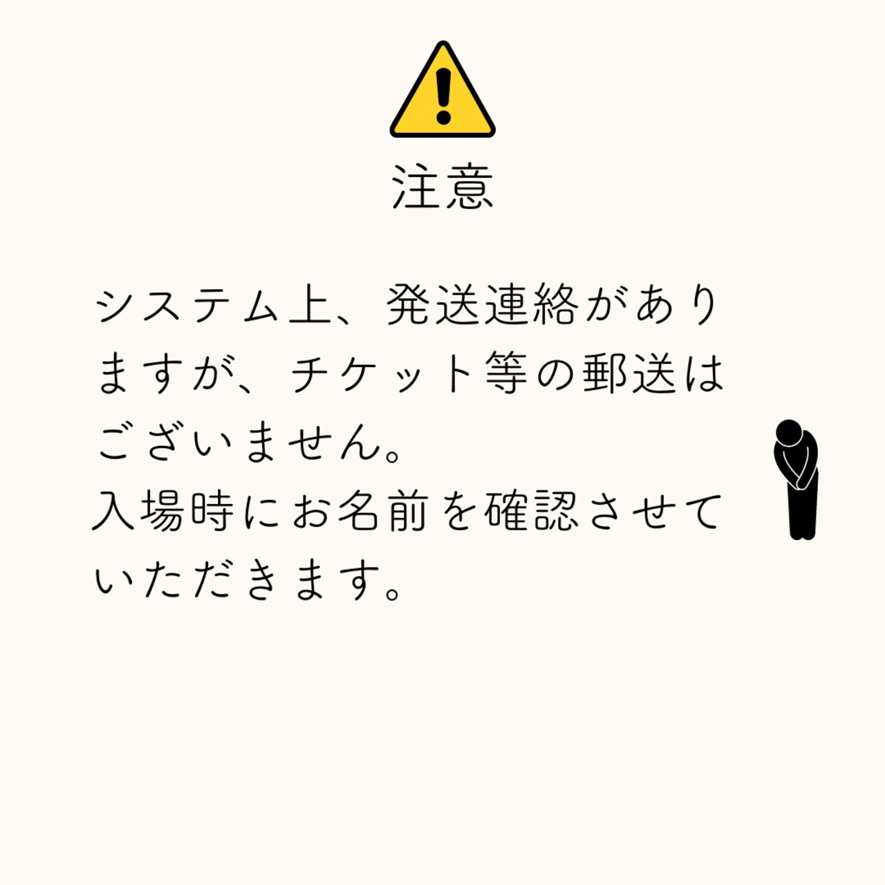 購入後、メールに発送連絡ありますが、チケットの郵送はございません。
